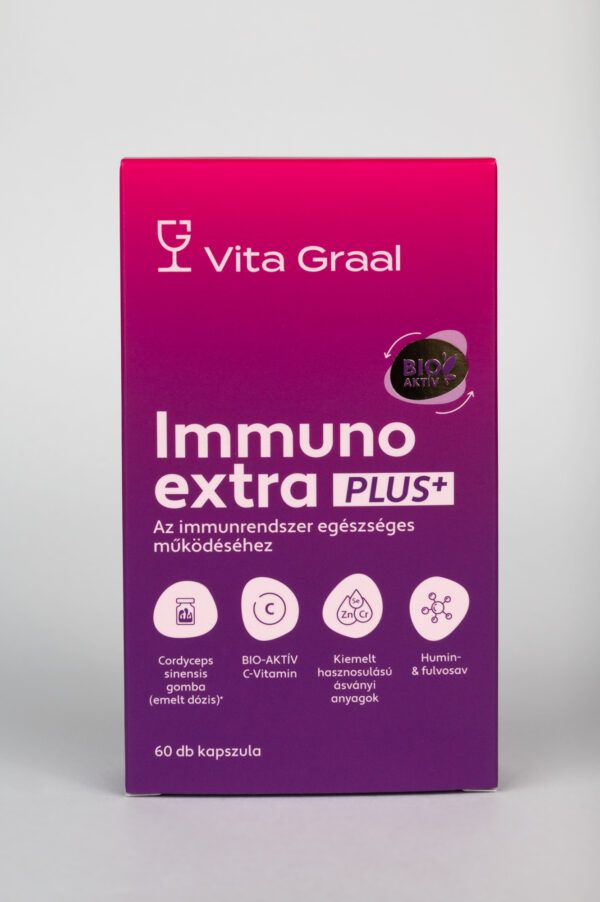 Cordyceps sinensis gombát, C-vitamint, huminsavakat, Kvercetint, Rutint és növényi kivonatokat tartalmazó étrend-kiegészítő vegán kapszulában. A Vita Graal Immuno extra PLUS+ az immunrendszer egészséges működését segítő étrend-kiegészítő. Egyben tartalmazza azokat az összetevőket, amelyek alapvető fontosságúak a szervezet védelmi rendszerének hatékony működéséhez. A termék kialakításánál arra törekedtünk, hogy olyan biológiailag aktív vitamin és ásványi anyag molekulaformák komplexe legyen, melyek segítik egymás felszívódását és biohasznosulását, valamint összetetten fejtsék ki pozitív hatásukat.