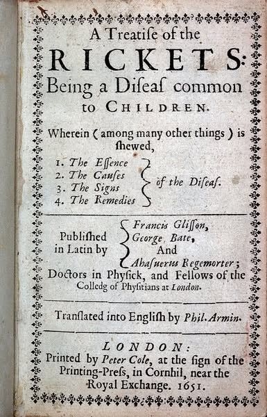 A D-vitamin hiánya miatt jelentkező angolkór, vagyis a rachtitis tüneteiről az első összefoglalót az angol Francis Glisson nevű orvos készítette.